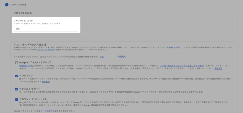 2.アカウント名を設定し、下のチェックボックスは特に変更せず次へをクリック