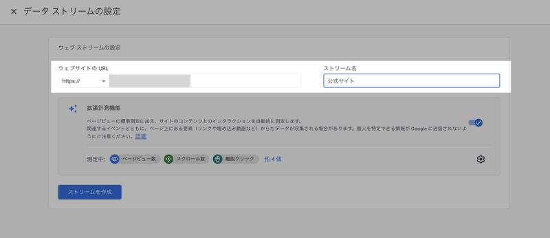 ストリーム名はサイト名など自身がわかる名前で問題ないです。※後ほど変更可