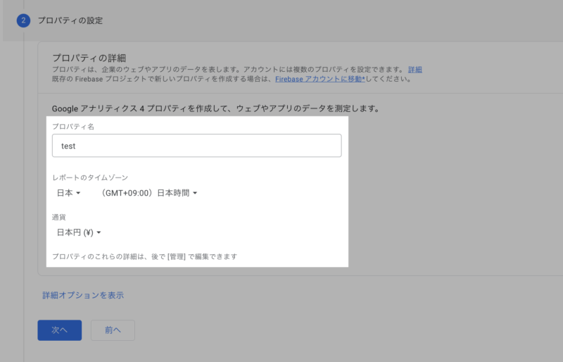 3.プロパティの設定を行います