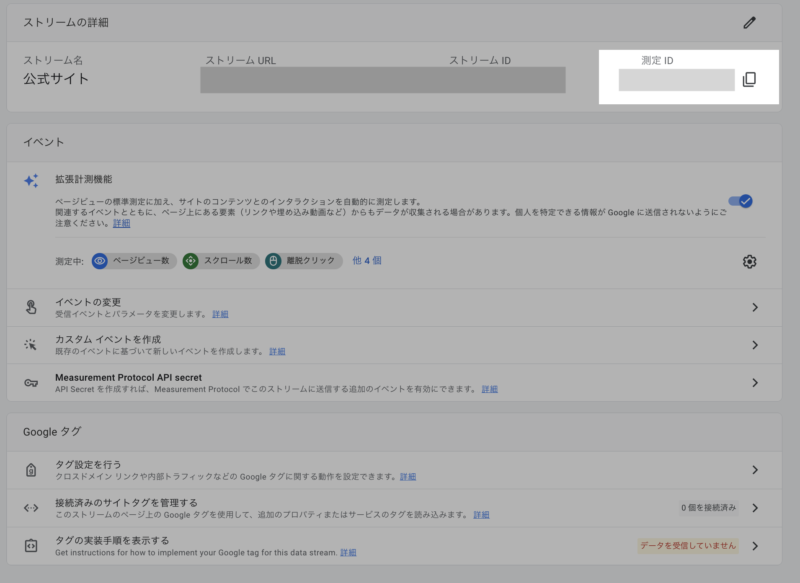 ストリームの詳細から測定IDをコピーします。
